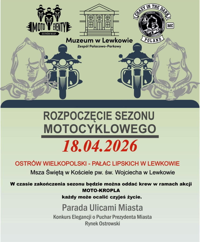 Już wkrótce wielkie rozpoczęcie sezonu motocyklowego! 18 kwietnia 2026 roku w Muzeum w Lewkowie Zespół Pałacowo-Parkowy odbędzie się wyjątkowe wydarzenie dla wszystkich miłośników motocykli. Organizatorzy zapraszają motocyklistów oraz mieszkańców na uroczyste rozpoczęcie sezonu, które połączy pasję do jednośladów z integracją i pomocą innym.